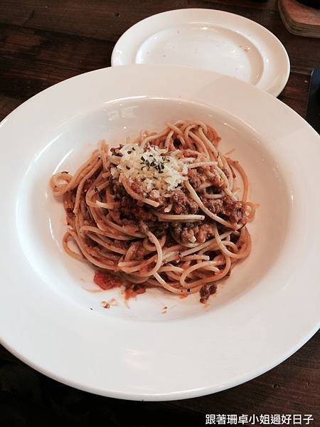 義麵坊的肉醬義大利麵果然不差,味道夠味而不膩,麵條也軟硬適中