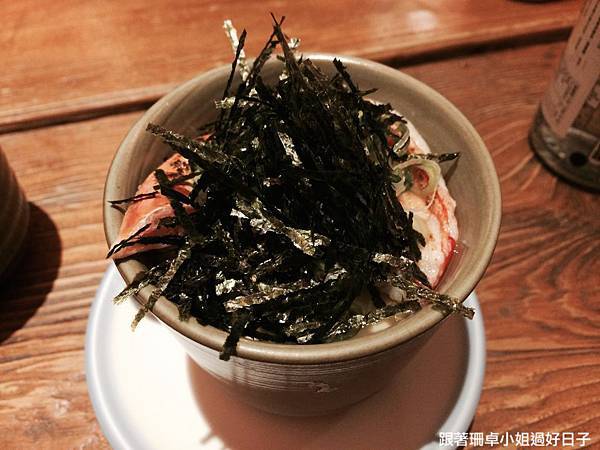 這道我覺得蠻好吃的,下面是茶碗蒸,上面搭配了松葉蟹、蝦卵跟海苔