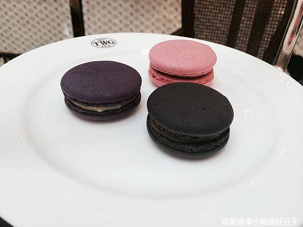 珊卓的馬卡龍選的是「拿破崙探險茶佐焦糖、皇家婚禮茶佐百香果和椰子、玫瑰芬香茶」三個口味,原價是@$75