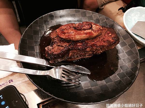 最上面小小的是鵝肝,下面是牛排的部份,最下面還墊了一塊法國麵包