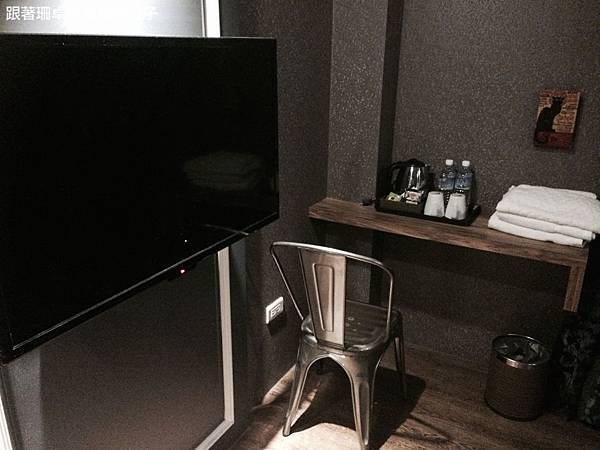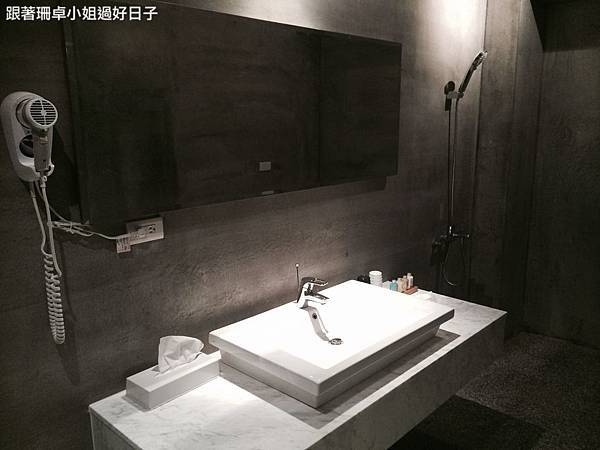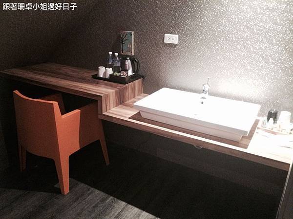 這間房的洗手台在房間內,旁邊放著簡單的備品