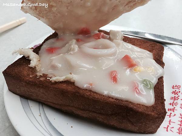 脆脆的吐司沾到湯之後會呈現一種外面吸湯柔軟,裡面保留一點脆感的口感