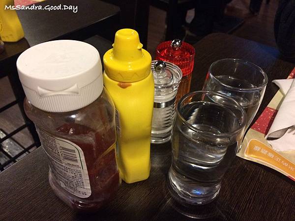 旁邊放著Heinz跟黃芥末,經典的美式配料