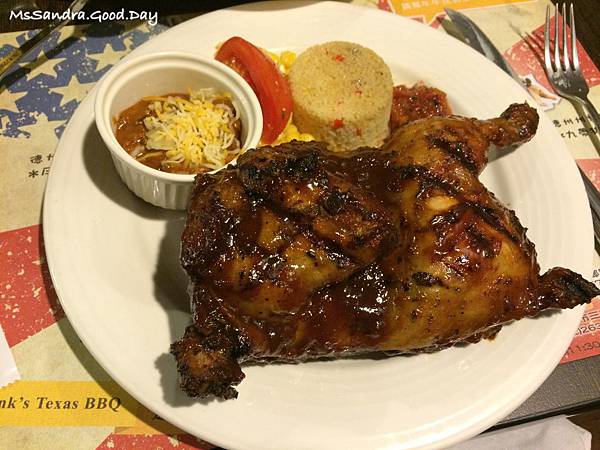 烤雞的味道也不錯,很BBQ,不過裡面有點柴,少了點肉汁