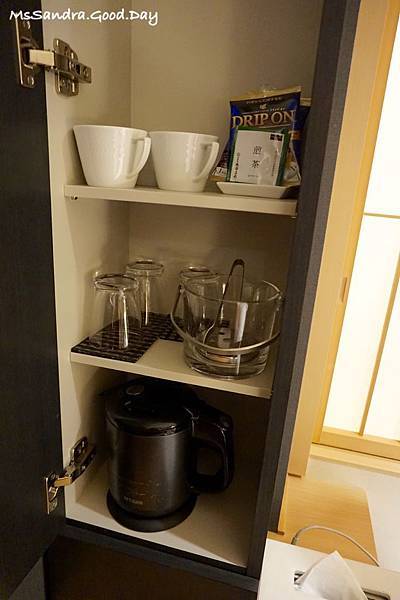 上方是杯子、冰桶、咖啡茶等備品