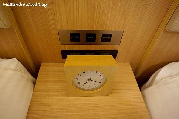 床頭有一個原木的鬧鐘,雖然我們沒有用到,但是還是覺得這樣的搭配很有一貫性