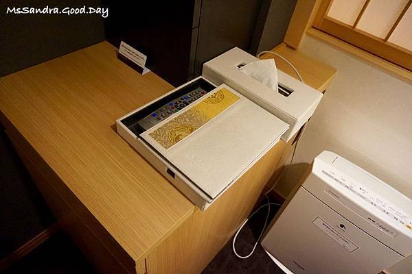 裡面的小櫃子上放著遙控器跟飯店簡介