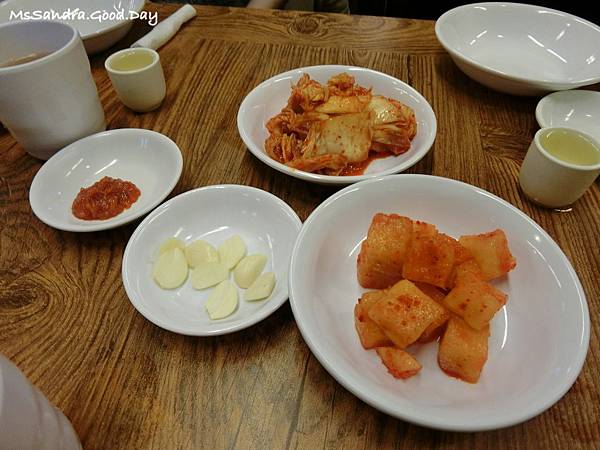 坐下來之後就會看到桌上有滿滿的泡菜,有蘿蔔跟白菜泡菜兩種
