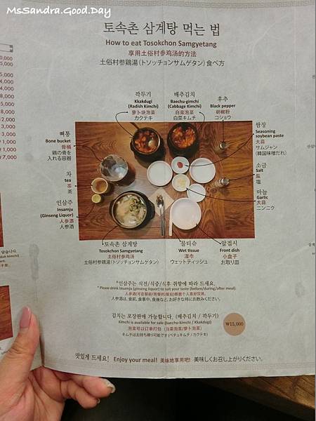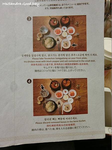 另外菜單上還有教導怎麼樣享用蔘雞湯