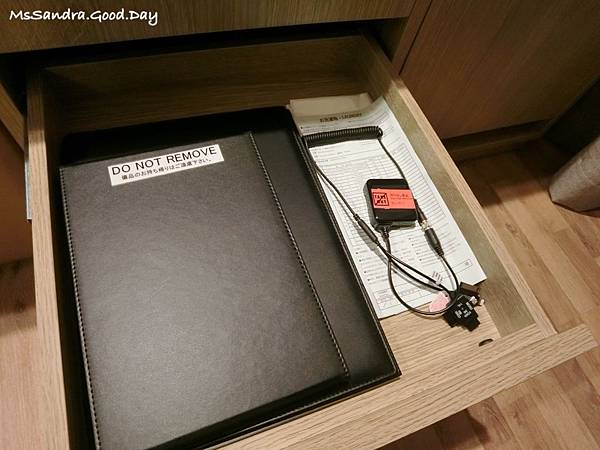 下面的抽屜有飯店的一些簡單介紹跟各式電器都可用的插頭