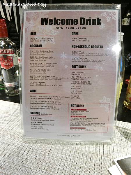 從啤酒、清酒、調酒到汽水、熱飲都有,所以不管大人小孩都可以選擇適合自己的迎賓飲料不用擔心~