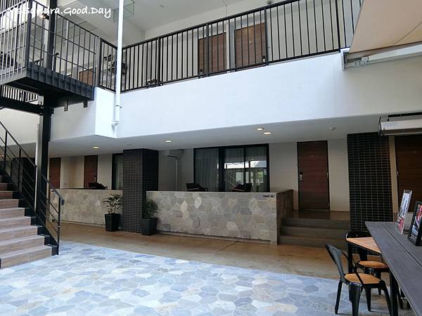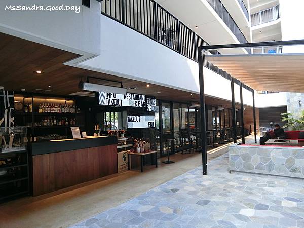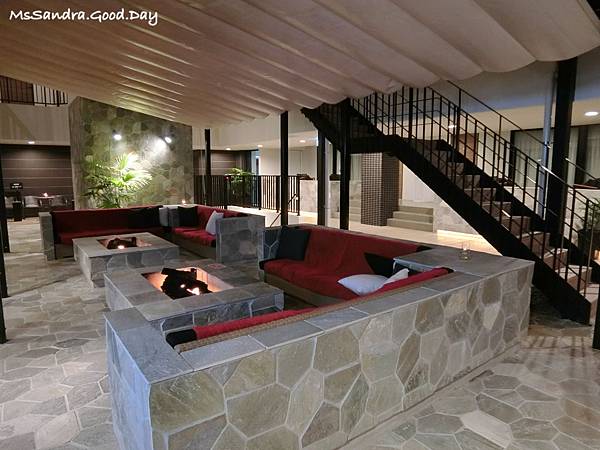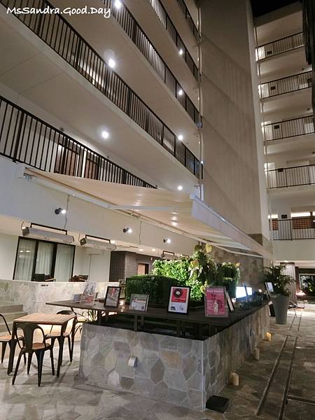 另外還有中庭半開放式的lounge,只要入住都有送迎賓飲料,就是在這區兌換喔