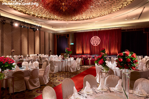 珊卓心得:喜來登也是經典飯店之一,餐點好吃、服務好這兩點完全不用擔心,場地全開時非常大,可以容納桌數很多。不過柱子蠻多而且很明顯,另外就是因為他們的場地在地下室,有些長輩會在意這點