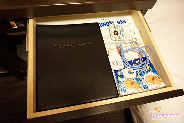 抽屜打開有房間的介紹,另外他們還很貼心的準備了多頭的充電器跟耳塞