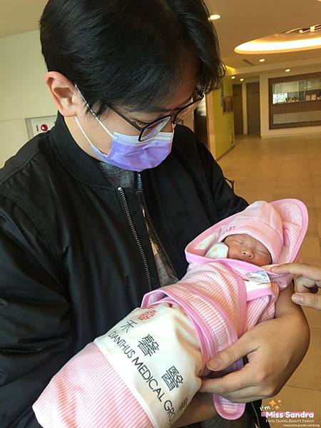 直到她出院跟我們一起回到月子中心之前她都是住在特別觀察區,無法從大家常常看寶寶的那個大窗戶看到她,只有爸爸媽媽可以進到嬰兒室裡面看看她