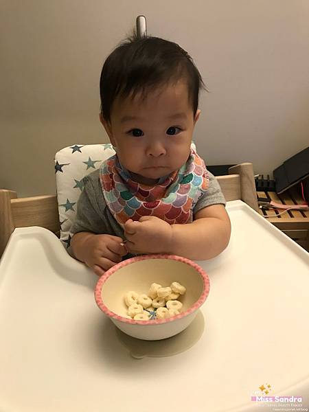 但是就會造成她的餐具、圍兜常常被她吃得整片髒兮兮,而且比較容易有沾到油