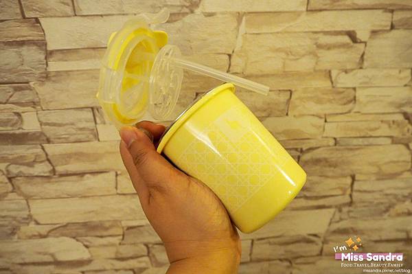 他的水杯是我覺得設計比較特別的,除了上蓋是用樂扣的方式之外,下面還多設計了一片可拆的濾片
