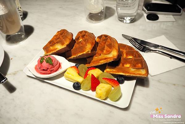 另外我們還點了一份野莓小花園鬆餅~ 他們的鬆餅是waffle體