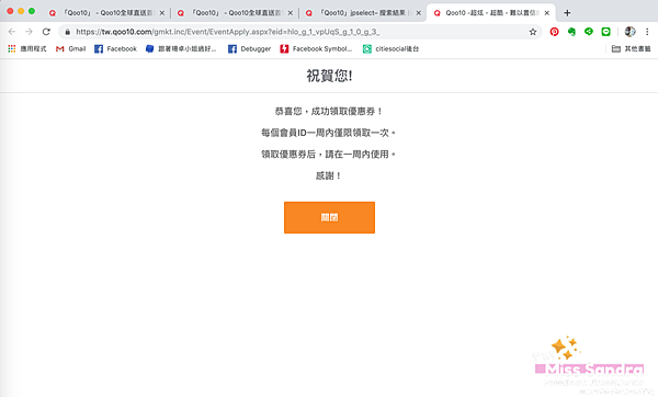按下去會跳出這個視窗,就表示你已經成功領取優惠券囉!