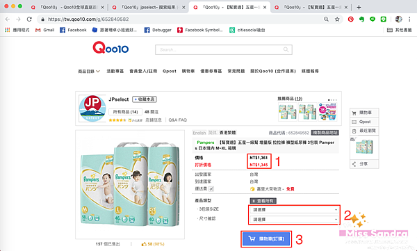 點進商品的頁面,可以看到標示1的地方是還沒有使用折價券之前的價格,所以看到這個價格先不用太擔心喔~