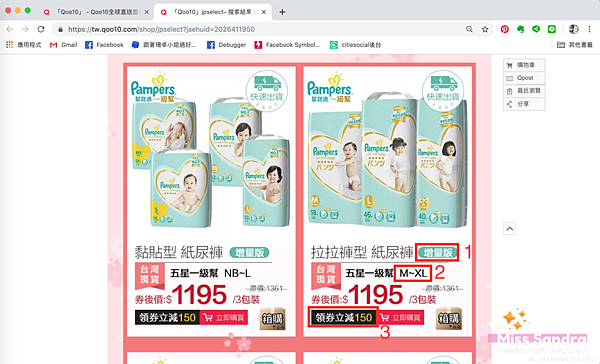 Qoo10上除了一級幫之外還有蠻多品牌的尿布也都有很優惠的價格,但因為我們平常沒有比價比較難跟大家分享價差有多大
