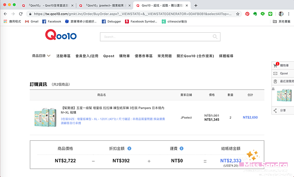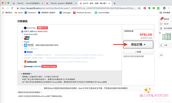 特別提醒一下Qoo10是用境外付款,所以信用卡的部分會有海外交易手續費喔