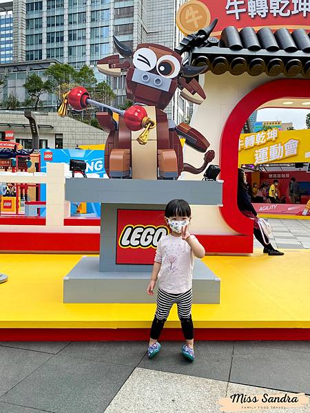 今天帶艾瑪上完課之後在市府捷運站老遠就看到一隻牛年樂高人偶,於是我們立刻改變行程,趁天氣好的時候去樂高2021牛轉乾坤運動會!!