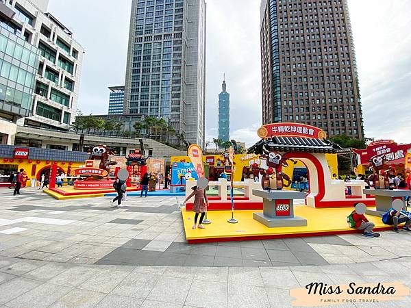 左邊靠近百貨的地方是樂高專賣店,右手邊靠近基隆路側是牛轉乾坤運動會的報到處,中間區域則是可以任意拍照的地方