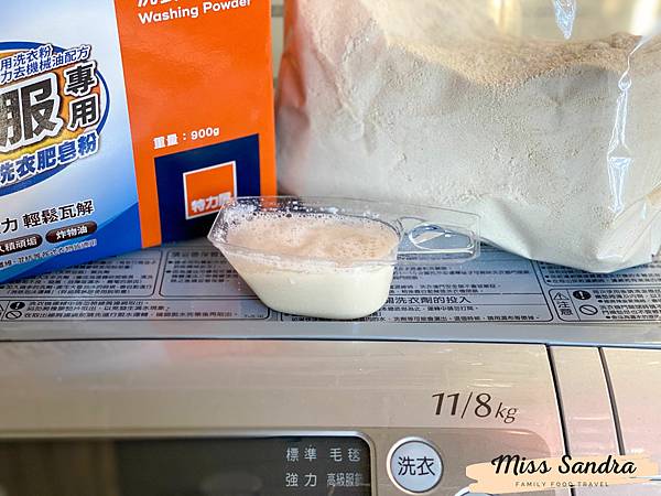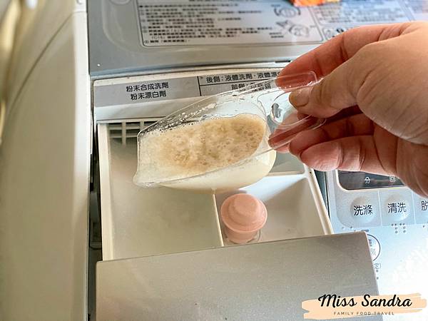 溶解之後就放入洗衣機裡,我自己是習慣放粉末的格子,讓他用強力水柱再沖刷一下