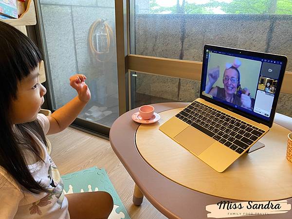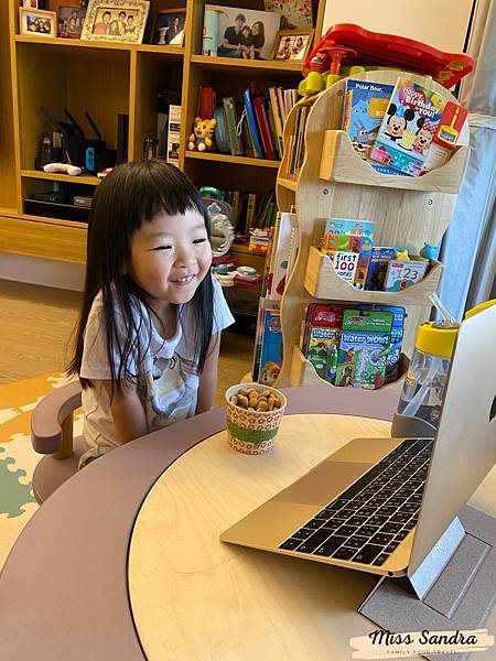 我覺得這就是線上課程很棒的優點之一,因為在熟悉的環境裡,小孩更能夠將學到的應用在生活中,也更能用實際的方式跟老師互動