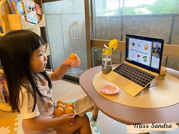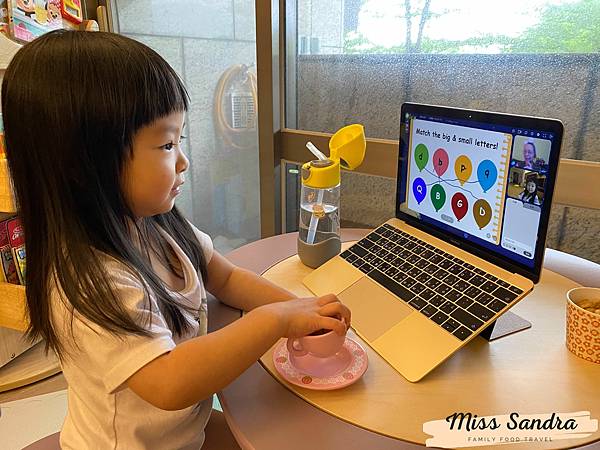 唯一我覺得下次可以更好的地方是我們應該要用iPad上課,因為上課中間有些互動的遊戲要小朋友圈起來或是連連看,但是筆電的觸控板對她來說有點太難了,需要大人協助才能完成,如果用iPad的話她應該就可以自己完成