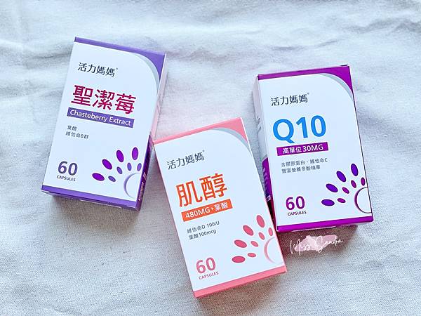 目前選擇補充蜜月超值組的是這三種:肌醇*2、聖潔莓*2跟Q10*1盒