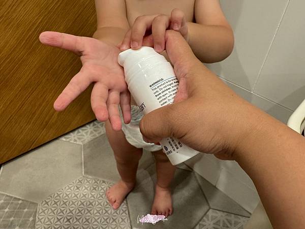 出賣一下我們家2歲的可愛小鮮肉,得立妥潤膚乳真的很容易推開,所以2歲的路卡自己也都可以擦得蠻均勻的