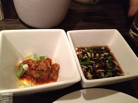 附上的醬有兩種,一種是偏酸的像醋之類的東西,另一種則是微辣的醃漬金華火腿