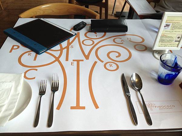 桌上的佈置很簡單,底下墊的紙也是用PINOCOCO的logo去變化設計的