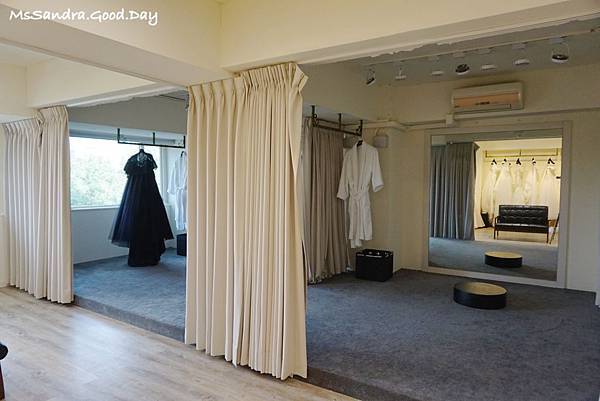 他們的試衣空間就像國外的婚紗店一樣,非常寬敞舒適
