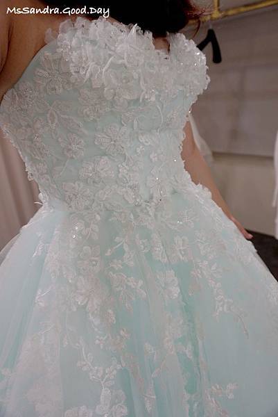 這顏色跟前一件白紗有不同的剔透感,帶著一點薄荷的沁涼