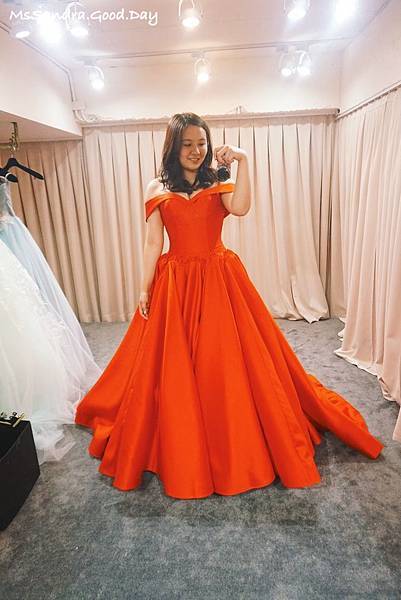 同時老闆娘也非常積極的在吸收融合最新的婚紗潮流,像今年很流行的兩截式、有口袋的款式